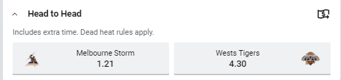 Tip: Melbourne Storm at $1.21