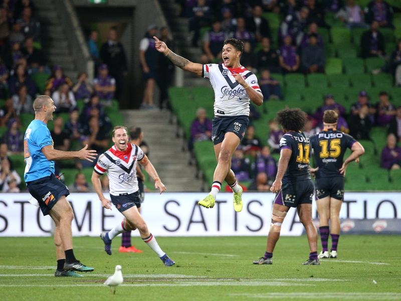 The Storm currently lead the league by four points, while the Roosters, who are without Luke Keary, Jake Friend and Jared Waerea-Hargreaves, sit in third.