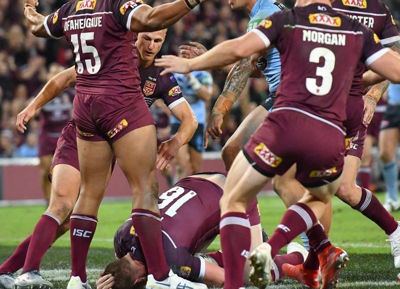 It appeared to be a big moment for the Maroons after NSW took the early ascendancy, however bunker official Jared Maxwell ruled a knock on.