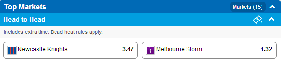 Tab Sportsbet: Knights $4.75 Storm $1.20