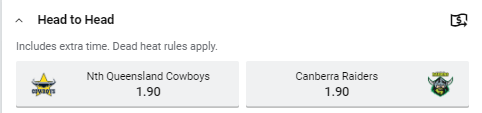We take a look at Saturday afternoons (6/4/2019) Week 3 NRL match which is between the North Queensland Cowboys and the Canberra Raiders. View the odds and teams for both sides as well as our Tips and Bets for the match.