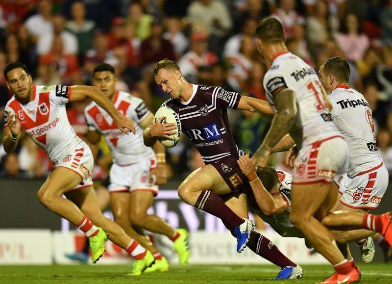 The controversial call also came just moments after Sea Eagles centre Brad Parker had been penalised for taking a chasing Dragons player off the ball.