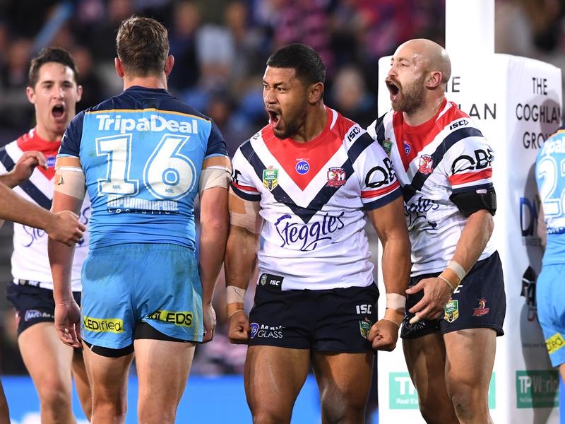 The Sydney Roosters have improved to fourth on the ladder thanks to a scrappy win on the Gold Coast that featured four first-time NRL try scorers and one of the most head-scratching decisions of the season.