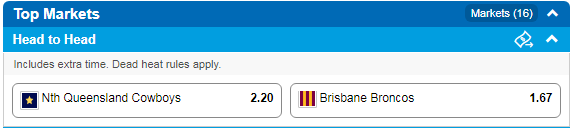 Nth Queensland Cowboys at $2.35