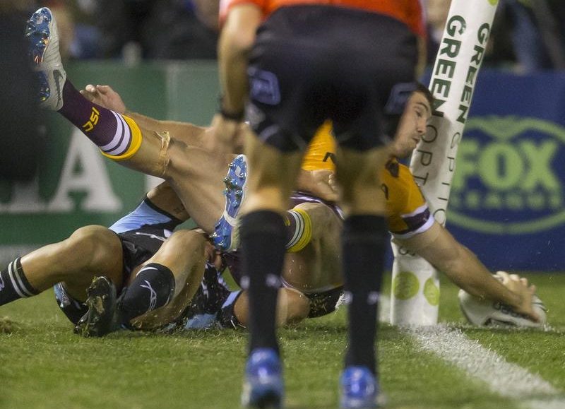 However the Broncos replied through Oates, who took a long cutout pass from Boyd and withstood a strong challenge from Sharks defenders to finish the clutch play.