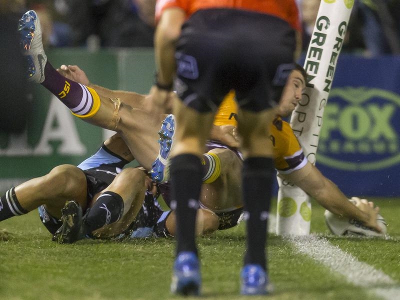 The Sharks were controversially denied a final shot at the tryline when the referees missed a Darius Boyd knock-on late in the game, however the Broncos held on for a strong victory.