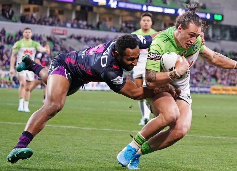 Leading 18-0 Melbourne looked like they would continue their march toward the minor premiership but Raiders prop Josh Papalii crashed over in the 76th minute to steal the match 22-18.