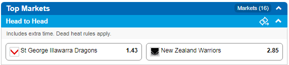 New Zealand Warriors at $2.85