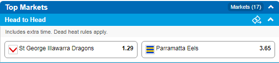 St. George-Illawarra at $1.30