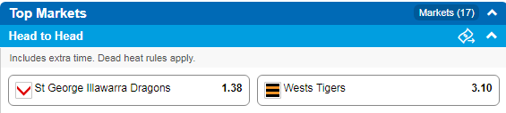 Tip: St George Illawarra Dragons at $1.38