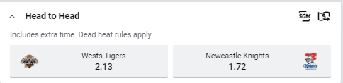 We take a look at Saturday evenings (24/8/2019) Week 23 NRL match which is between the Wests Tigers and the Newcastle Knights. View the odds and teams for both sides as well as our Tips and Bets for the match.