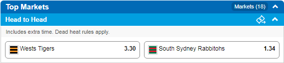 South Sydney Rabbitohs at $1.34