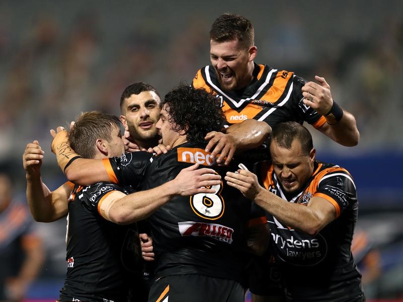 In the truest definition of a game of two halves, the Tigers led 34-0 at the break before North Queensland gave them a scare with three tries in seven minutes.