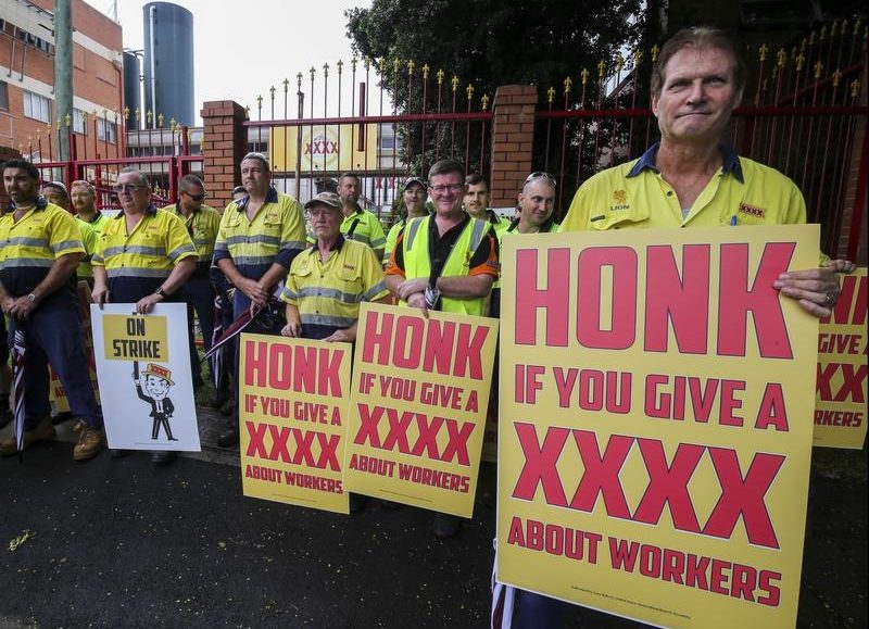 The workers have failed to come to an agreement with XXXX’s parent company, Lion, over pay and contract labour hire.