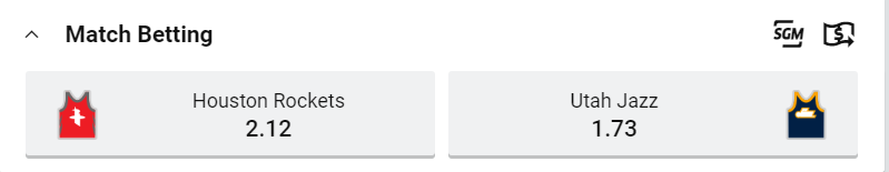 Tip: Houston Rockets at $2.12