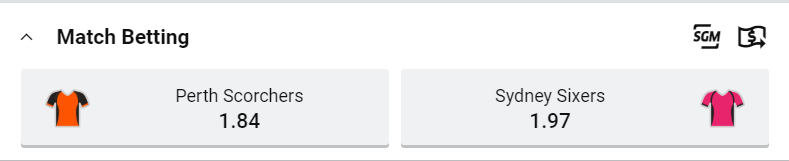 It’s another even money pick-em game on Wednesday as both sides hope to earn their second win of the season. We take a look at Thursday’s (26/12/2019) BBL Big Bash 2019/2020 match between Perth Scorchers and Sydney Sixers. We take a look at both teams odds and give our tips and value tips for the match.