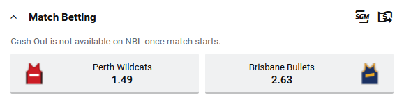Tip: Perth Wildcats at $1.49