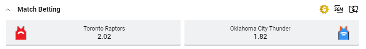 The NBA game between the Toronto Raptors and Oklahoma City Thunder be on Thursday (16/1/2020) at 12:10PM and we take a look at the odds for both teams. The Thunder go into the game as favourites.