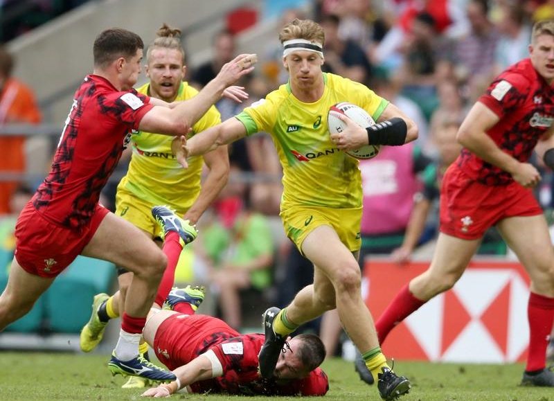 Australia’s men’s team have fallen just short of toppling hosts England in the quarter-finals of the London rugby Sevens, going down 21-17 on Sunday.
