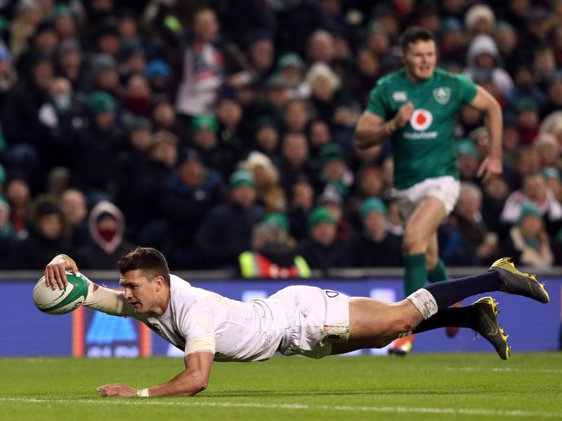 England stole a decisive late march with Henry Slade bagging the visitors’ third try, racing first to May’s chip in behind on Saturday.