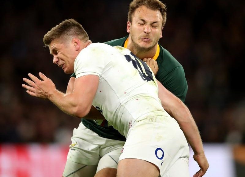 Farrell stopped Andre Esterhuizen in added time with a shoulder-led tackle to the chest without wrapping an arm around the Springboks centre, but referee Angus Gardner declined to award a kickable penalty that would have decided the match.
