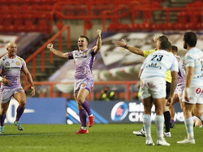 Exeter, down to 14 for the last nine minutes, produced magnificent defence as Racing hammered at their line and earned a last minute penalty that Joe Simmonds slotted to secure the title – albeit after some confusion over whether the match had reached full-time.