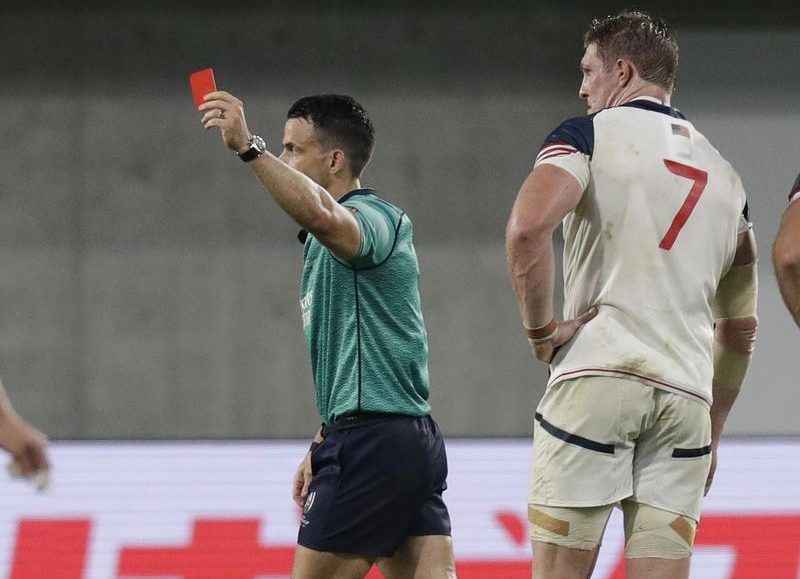 Flanker John Quill has been banned for three matches and will likely miss the rest of the United States’ World Cup campaign after he was sent off in his side’s Pool C match against England in Kobe on Thursday.