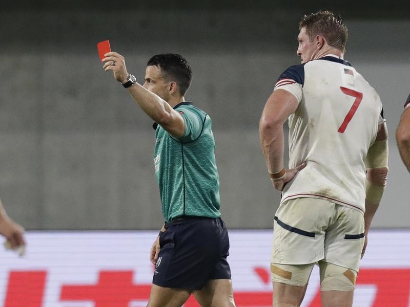 Flanker John Quill has been banned for three matches and will likely miss the rest of the United States’ World Cup campaign after he was sent off in his side’s Pool C match against England in Kobe on Thursday.
