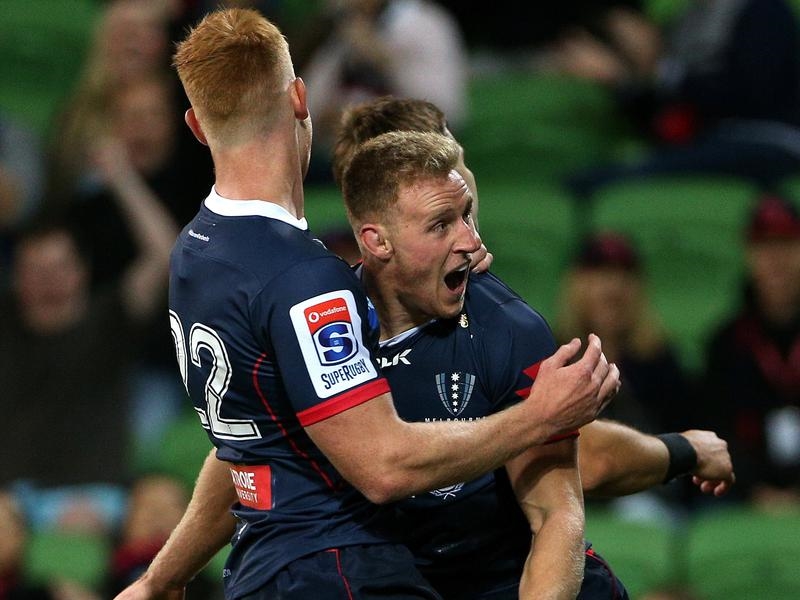 The six-try bonus point victory at AAMI Park means the Rebels are now more than a win clear of their nearest rivals the NSW Waratahs, who fell to the Blues earlier in Auckland.