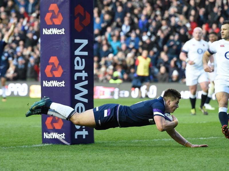 He scored two of the Scots’ three first-half tries – one an individual score from near halfway – as they blew away England before halftime then weathered an inevitable response from the visitors with a brilliant defensive effort and indomitable spirit.