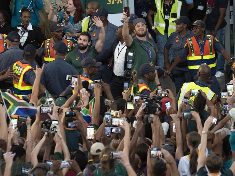 Captain Siya Kolisi and coach Rassie Erasmus are expected to arrive with the Webb Ellis Cup later on Tuesday.