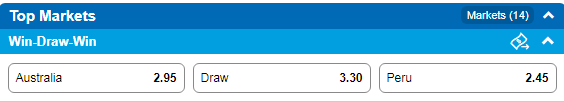 We take a look at the World Cup Group Stage match between the Socceroos and Peru on Tuesday night which is a must win game for the Socceroos to have any chance of making the final sixteen. View the odds for each team as well as our tips and selections in what will be a do or die match for Australia.
