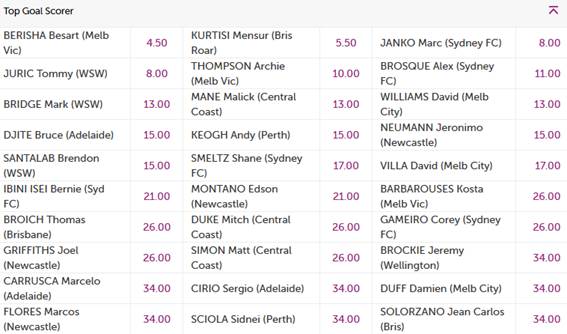 See below the BetEasy odds for the top goal scorer in the 2014/15 Hyundai A-League: