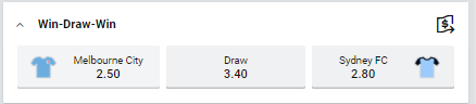 Correct Score: Sydney FC 1-0 at $2.63