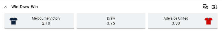 Correct Score: Melbourne Victory 1 – 0 at $10.00