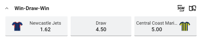 Correct Score: Newcastle Jets 2 – 1 at $7.50
