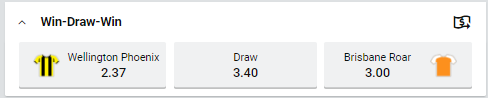 Correct Score: Wellington Phoenix 2-1 at $8.50