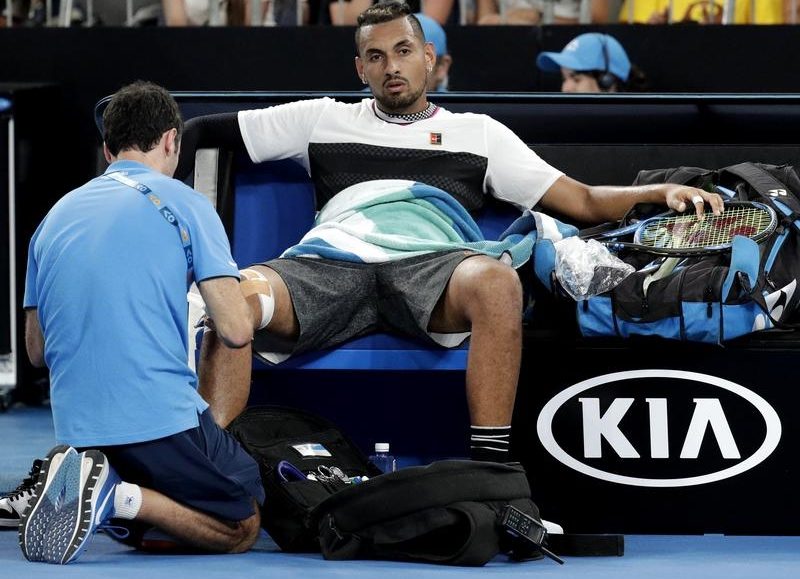 Kyrgios took to the court without strapping and the pain seemed to first present itself late in the first set.