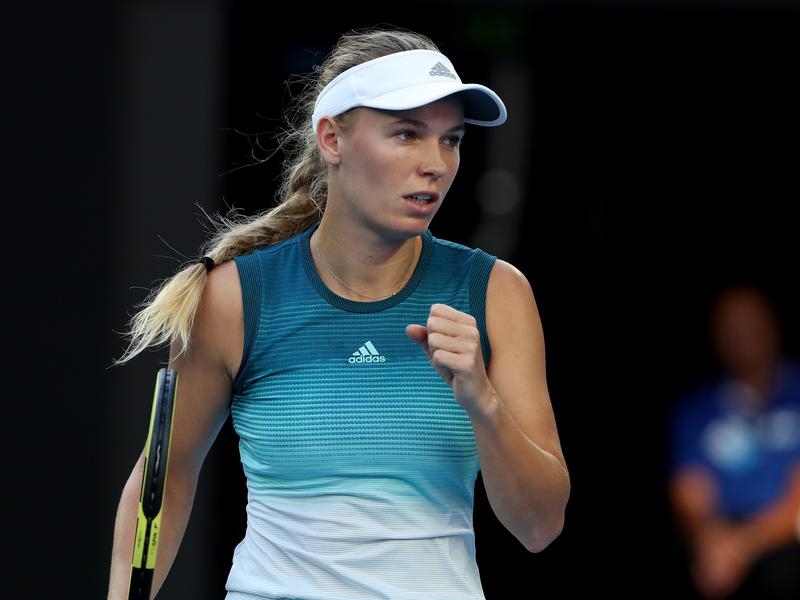 Reigning Australian Open champion Caroline Wozniacki has marked her return to Rod Laver Arena with a win, defeating Belgian Alison van Uytvanck in straight sets.