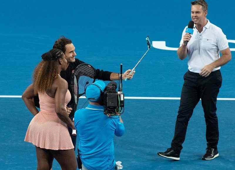 Williams enjoyed a strong opening service game in the mixed doubles, with two of her serves proving too difficult to handle for Federer.