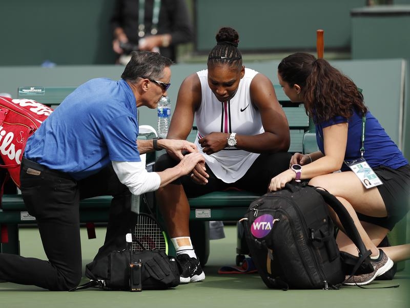 Serena Williams’ return to tennis after a five-week break has ended abruptly with the former world No.1 retiring from her match against Garbine Muguruza at the WTA event at Indian Wells because of a viral illness.