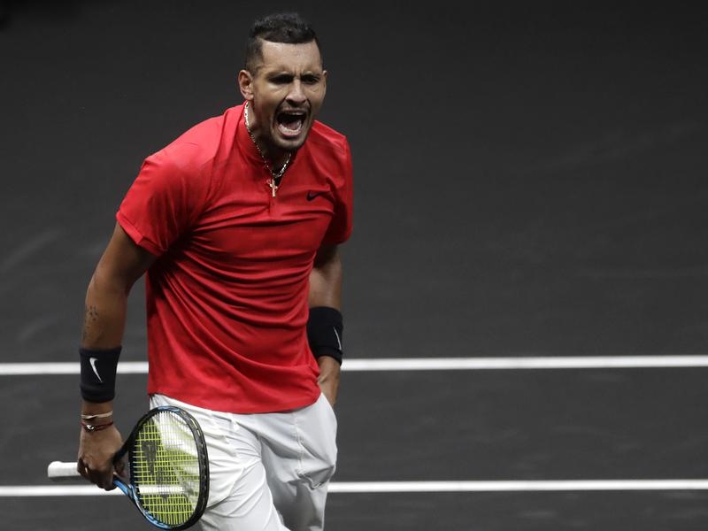 Nick Kyrgios was back to his old ways during his Laver Cup win over Tomas Berdych in Prague.