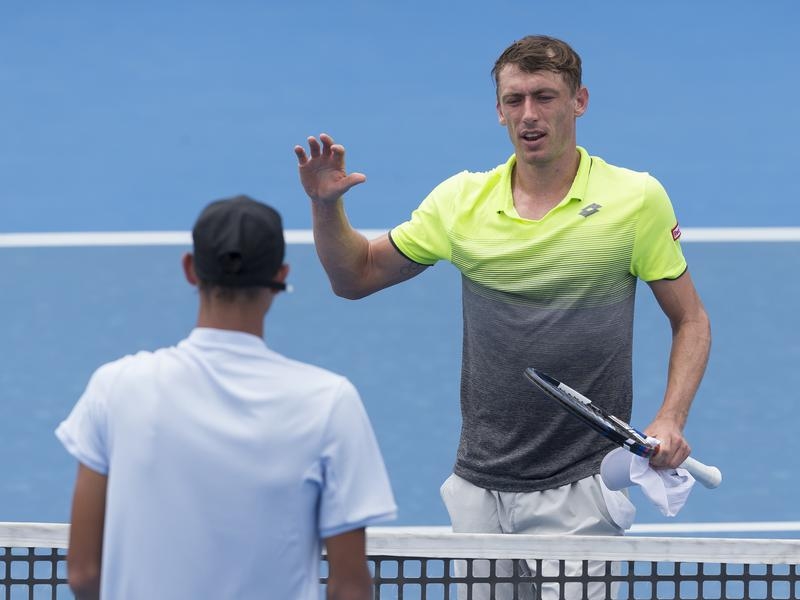 “But it’s good to get that one out of the way today. Obviously, it’s a bit of pressure, too, playing a young up-and-coming Australian player, a big talent, Alexei.”