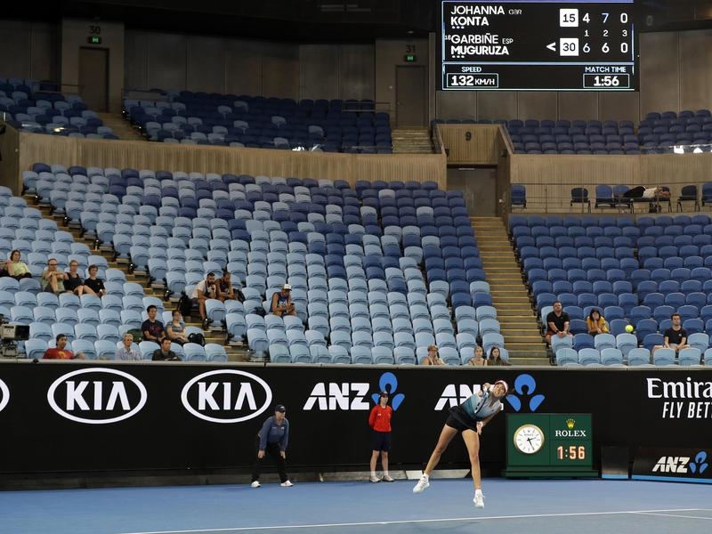 With a log-jam in scheduling caused by two men’s five-setters earlier on Thursday, 18th seed Muguruza and Briton Konta were kept from playing their first point until 12:30am (AEDT) on Friday in front of a smattering of hardy fans at Margaret Court Arena.