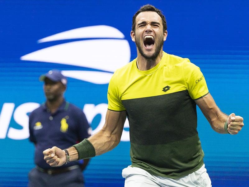 Standing six-foot, five-inches (1.98m) with a scruffy beard Berrettini cuts an imposing figure, a Rocky-like underdog who packs a similar punch as the fictional boxer and is now one win away from a shot at the title.
