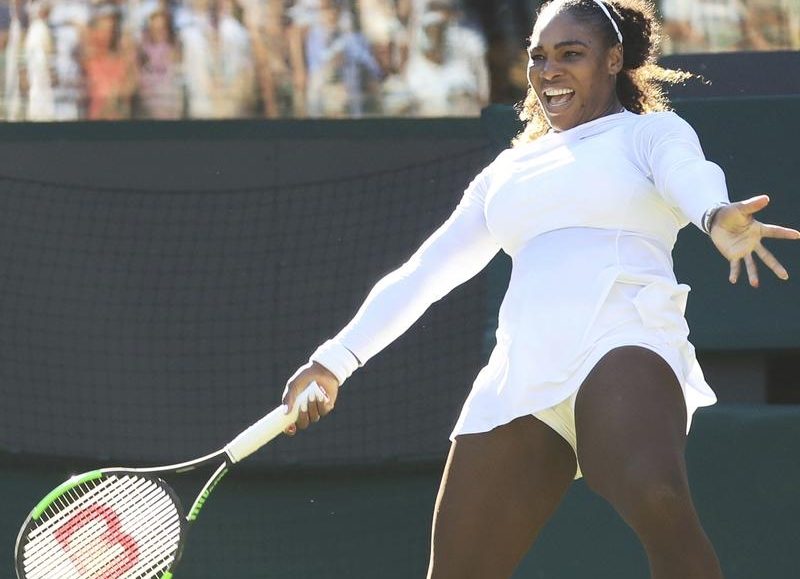 Serena Williams swapped the skin-tight catsuit that caused a stir at the French Open for a more conservative look as she marked her return to Wimbledon for the first time since becoming a mother with a 7-5 6-3 first-round win over Arantxa Rus.