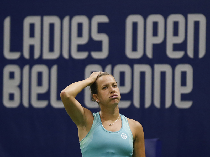 Top seed Barbora Strycova has progressed to the semi-finals of the Ladies Open Biel Bienne after her opponent retired from the WTA tournament through injury.
