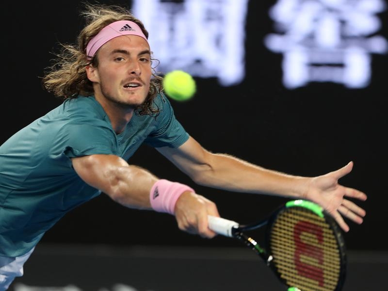 Young gun Stefanos Tsitsipas has recovered from a spectacular mid-match meltdown to become the first Greek player ever through to the fourth round of the Australian Open.
