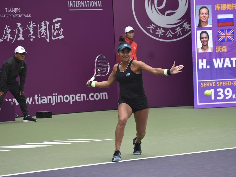 Heather Watson has continued her impressive form, storming into the Tianjin Open final with a straight-sets victory over Russian Veronika Kudermetova.